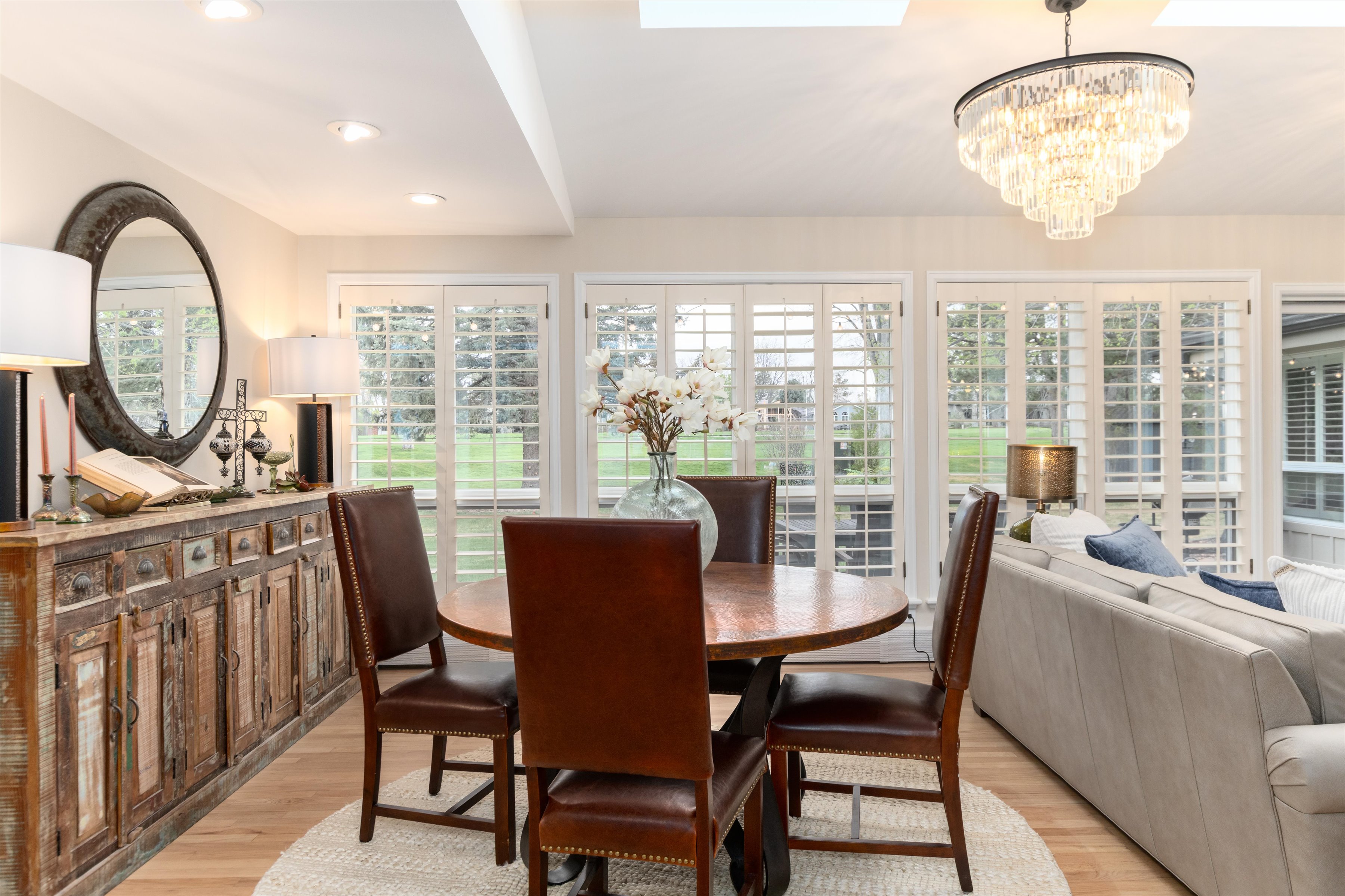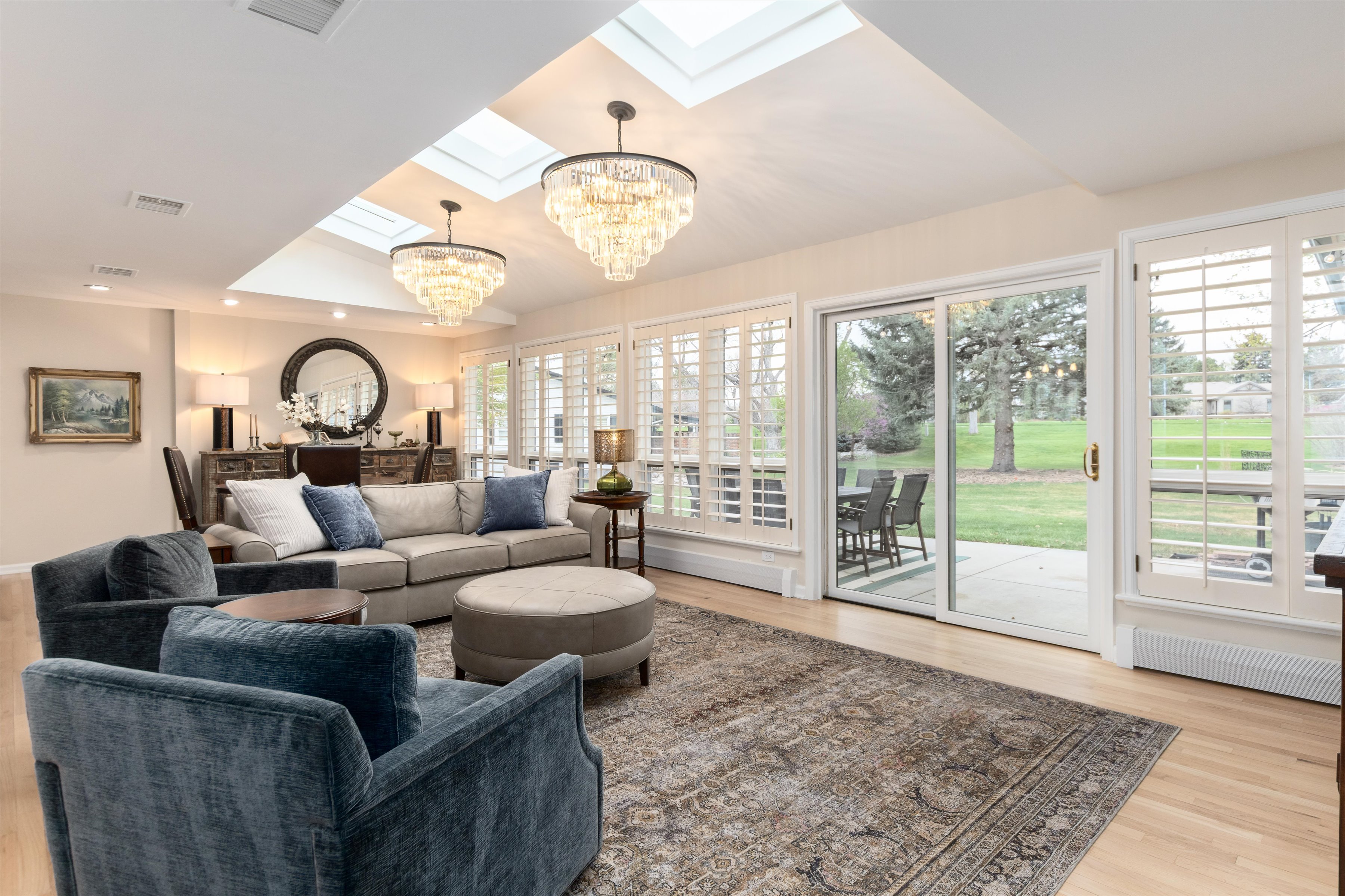 Expansive windows frame the 15th fairway and manicured grounds.