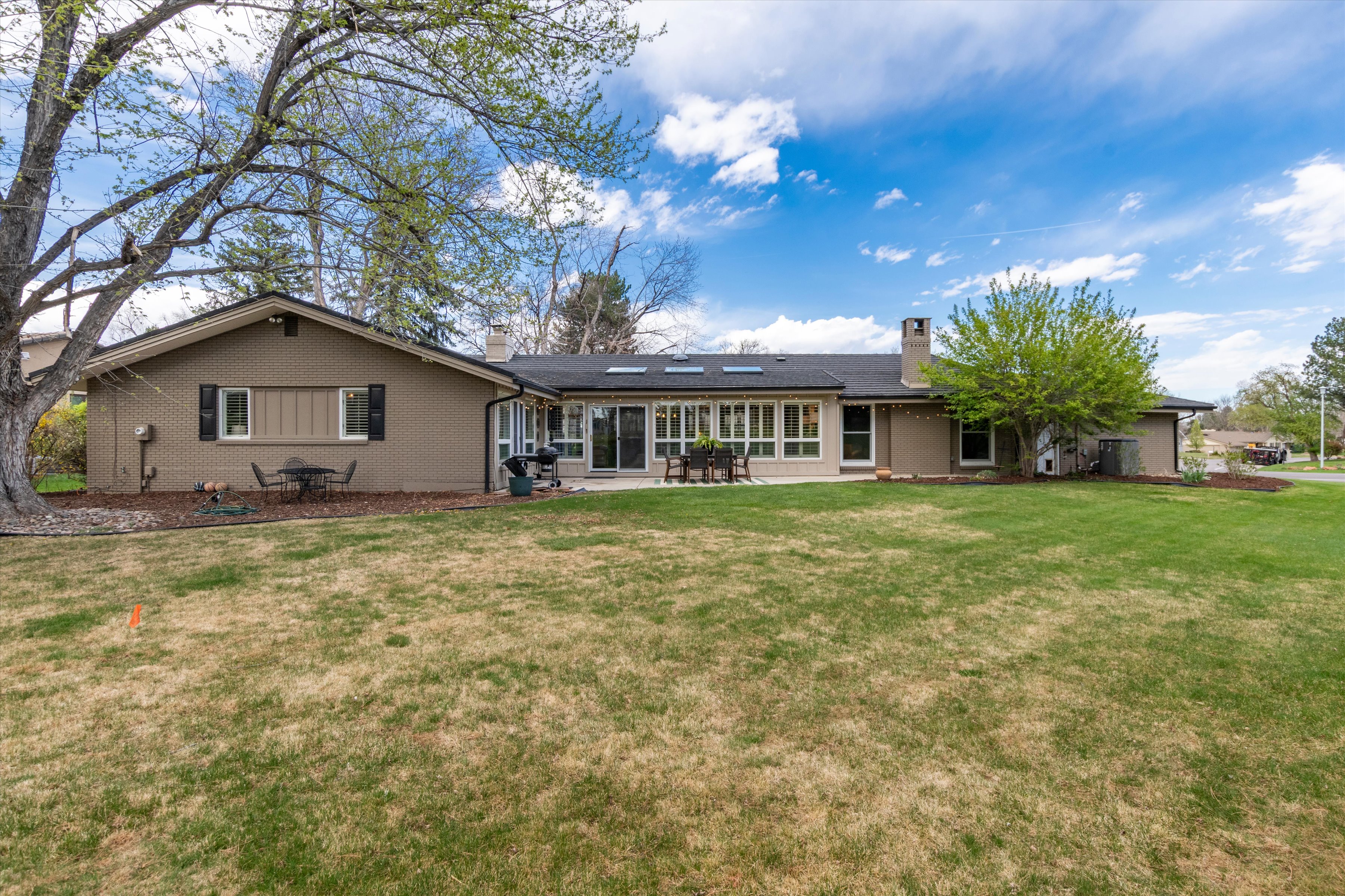 Patio, sport court, and golf cart access to Columbine Country Club.